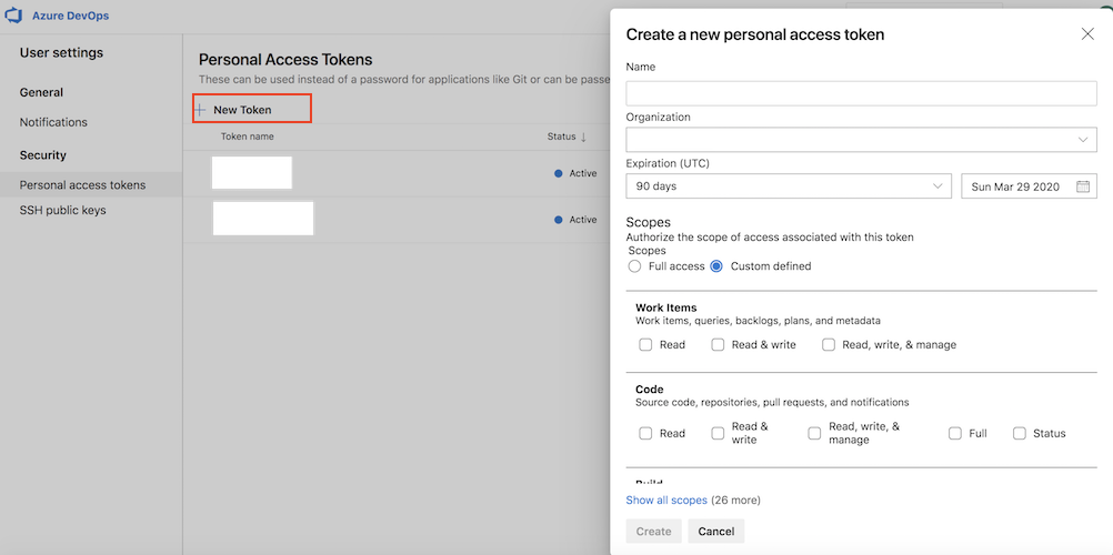 AZP_TOKEN前面申请的有足够权限的Personal Access Token