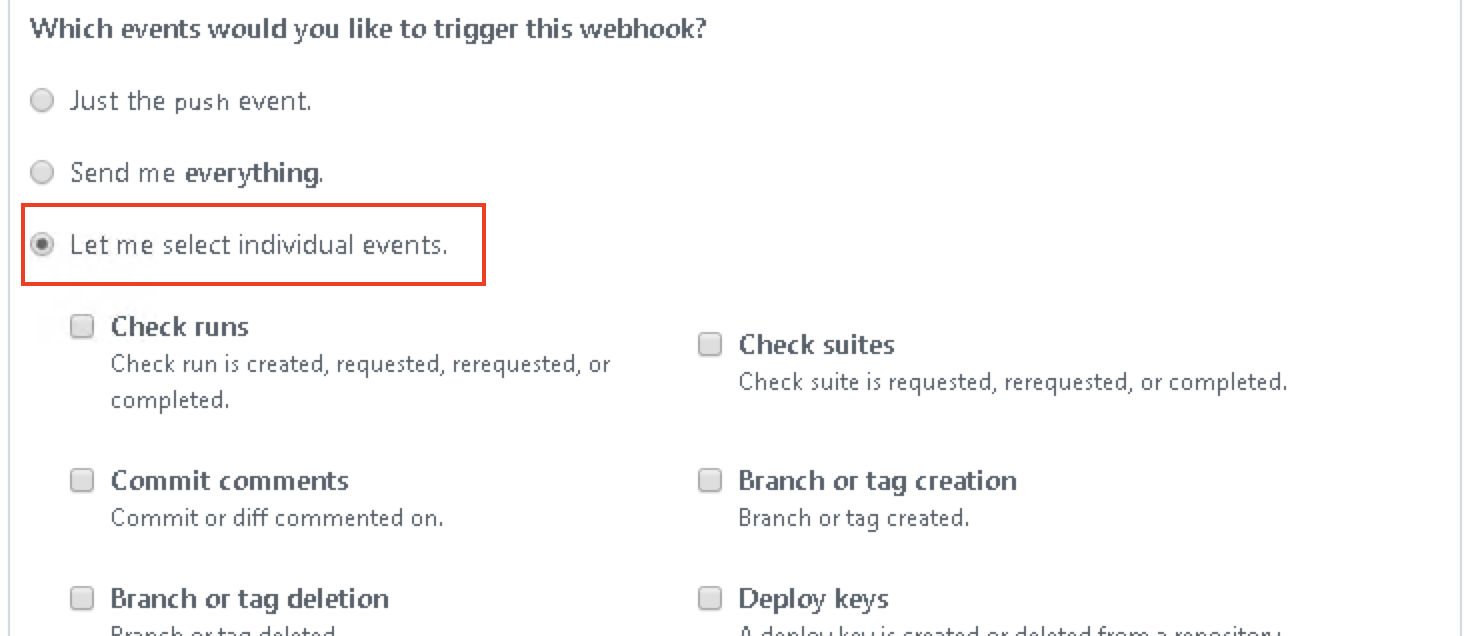 选择”Let me select individual envents”自定义webhook触发事件