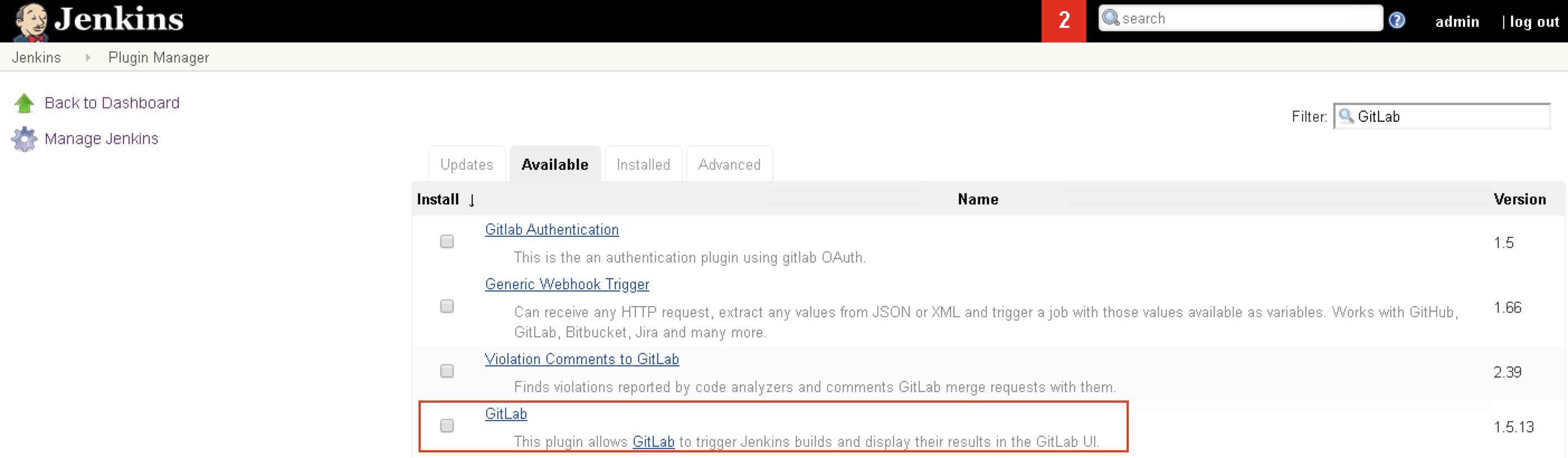 安装GitLab插件(如果Git插件不存在,会作为GitLab插件的依赖被安装)