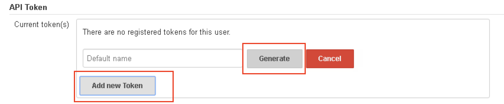 点击Add new Token,并点击Generate按钮产生当前用户的API Token,注意立即复制保存,因为页面刷新后,将被隐藏