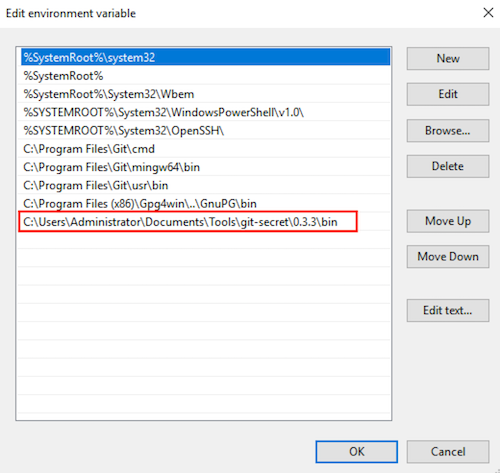 (4) 将git-secret目录下的bin目录加到Windows的Path环境变量中