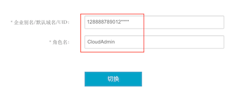 云团队的某个RAM用户首先登录云团队的账号,然后通过切换角色并输入业务部门云账号或者别名,以及对应的角色”CloudAdmin”就能切换进业务部门云账号里。